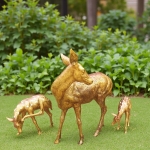 This group of exquisite outdoor bronze doe and fawn statues has amazing details. Such astonishingly high-quality animal sculptures would become a highlight in the garden. And this group of bronze deer sculptures shows us that the love between animals would never be less than the love between humans. The loving doe is standing between the two little fawns. The two fawns are playing in the lawn, and the doe is quietly guarding her fawns.