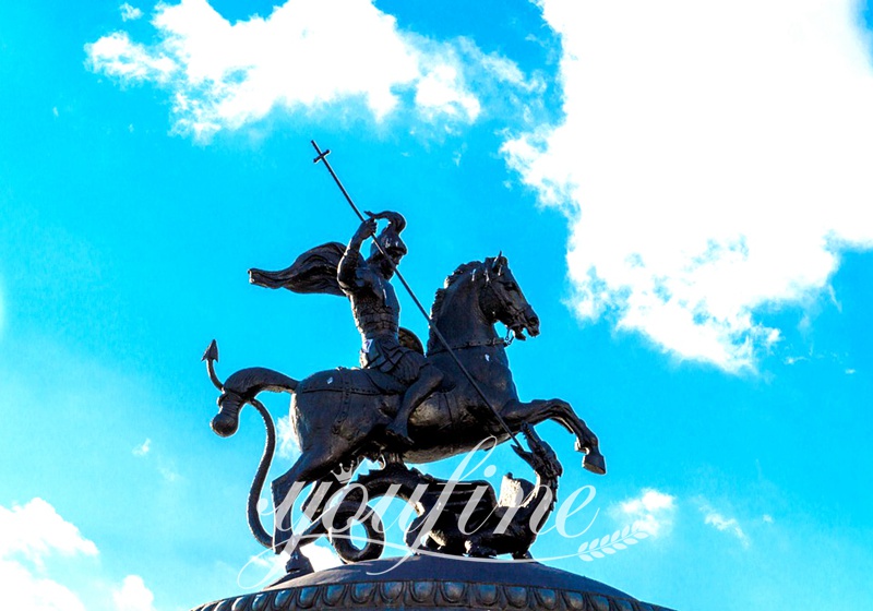 Our bronze St. George and dragon statue depict the scene of St. George killing the dragon. St. George was riding a horse, and his right hand was armed with a rifle. Firstly, he used his weapon to contain the dragon’s throat. Then this monster dragon has been suppressed from breaking down under his horse. We use the traditional and ancient “lost wax process” to make this sculpture, and every detail is so refined and perfect.