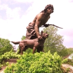 Commissioned by a group of prominent New Yorkers, Ward completed this large-scale hunter statue based on a previous, smaller version. The sculpture, made of bronze, depicts a hunter and his hound larger than life-size. Its overall dimensions are: 10 feet wide, 5 feet deep, and 6 feet 3 inches high, with a polished Rockport granite base.