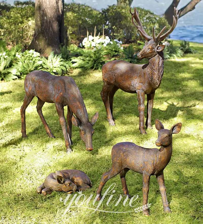 This large standing stag sculpture is very durable. Also, we are a direct factory so all statues are very affordable and reasonably priced. This large-standing garden decoration is perfect for display in mall indoor and outdoor gardens, home garden and patio decorations, theme parks, golf course decorations, children’s play areas, and museums. Of course, these adorable bronze deer family sculptures are also a hit at school displays or outdoor garden animal-themed events.
