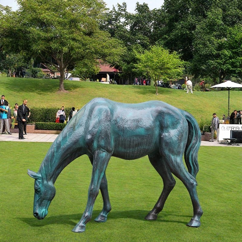 This green bronze grazing horse statue is one of our customers’ favorite garden decorations. Another favorite is the mother and calf grazing horse statue, which shows the beautiful scene of horses grazing leisurely on the vast grassland.