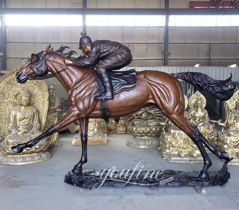 The real life size racing horse statue embodies the thrilling and fast-paced world of horse racing. These sculptures skillfully capture the intense athleticism and grace of thoroughbred racehorses in action. The racing horse sculptures showcase the sleek, muscular bodies of these magnificent animals in full stride.